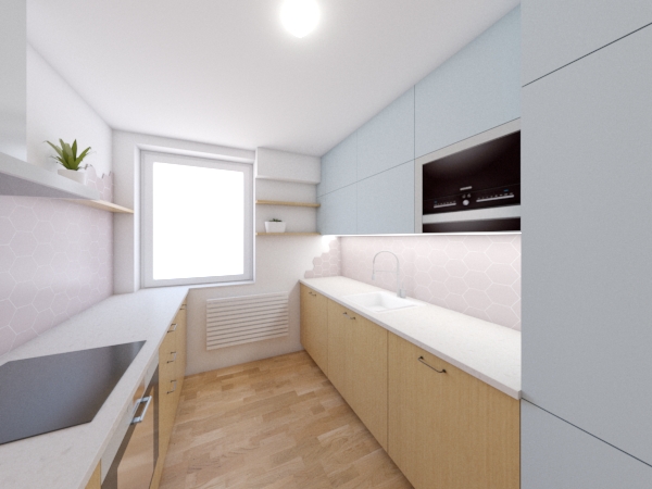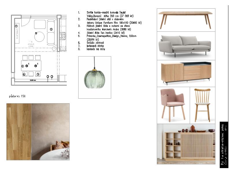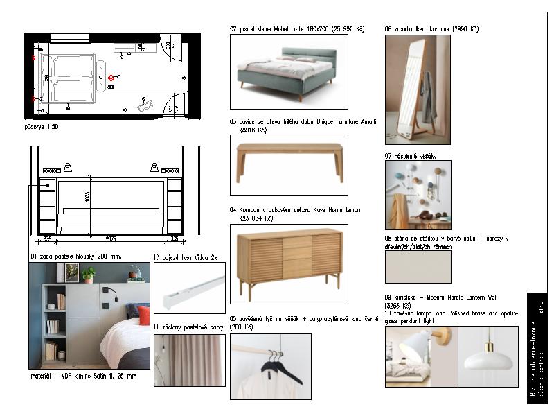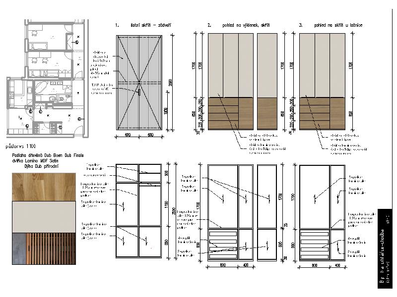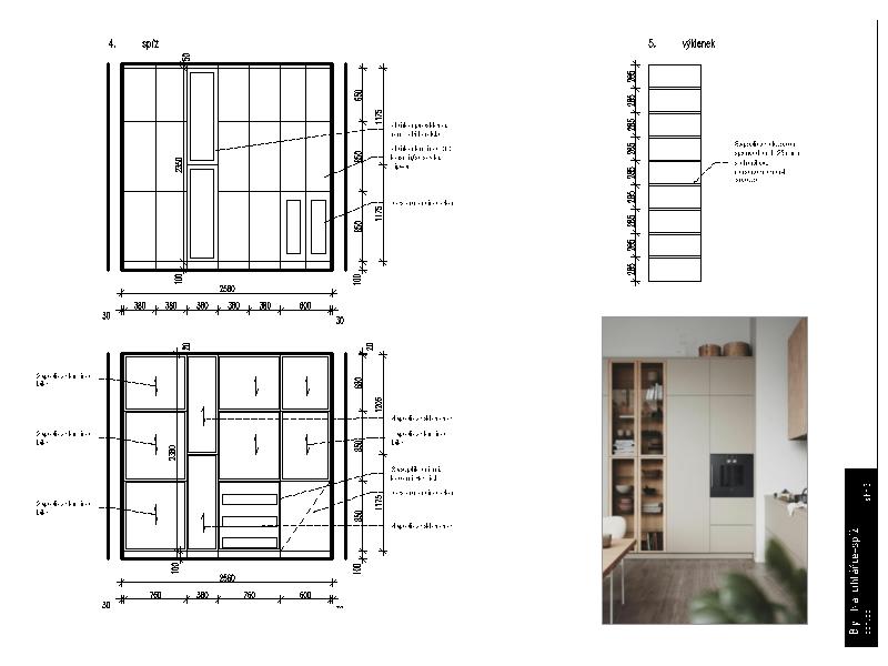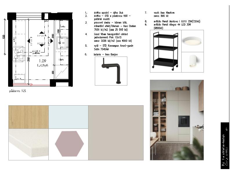 Návrh obsahoval výběr materiálů, výkresovou dokumentaci pro truhláře, instalatéra a elektrikáře, autorský dozor a specifikaci prvků.